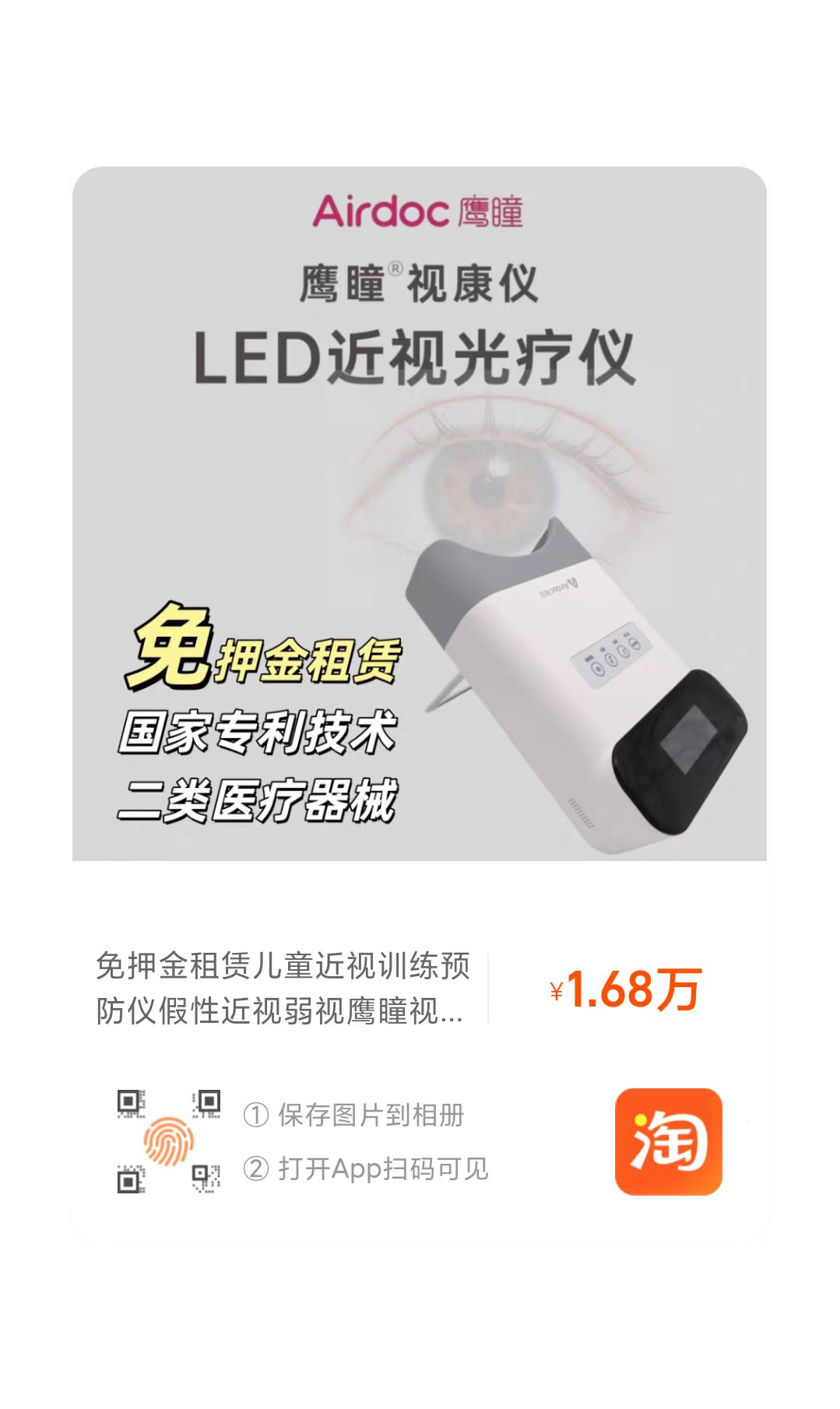 安全无忧,细节呵护 操作零门槛,孩子自主完成 游戏化治疗,提升孩子兴趣 临床验证:效果显著,数据支撑 近视前期儿童:使用1年后近视发生率降低58%; 已近视儿童:眼轴年均增长控制在0.15mm以内(正常生理增长为0.2-0.3mm); 视力提升:90%用户实现裸眼视力提升1行以上。 上海儿童医学中心的临床试验显示,该设计使治疗有效率提升41%,同时将黄斑损伤风险降至零。眼科专家赵阳教授评价:“这种将AI眼底相机、数字视觉训练与PBM技术结合的方案,真正实现了从被动矫正到主动预防的跨越。” 用户口碑:从焦虑到安心的防控之路 杭州某小学学生:“像在玩追光游戏,眼睛一点都不累!” 北京家长:“通过手机APP实时查看孩子眼健康数据,再也不用担心他偷偷玩手机了。” 上海眼科医生:“已将鹰瞳视康仪纳入诊疗方案,尤其适合高度近视家族史或户外活动不足的孩子。” 未来展望:科技赋能,守护清晰未来 鹰瞳科技正在构建“设备+服务+保险”的闭环生态:推出“视力健康险”,用户连续使用达标可获赔付;与教育部门合作开发校园视力监测系统;研发可穿戴式智能护眼设备,实现24小时动态防护。 每天2次、每次3分钟,鹰瞳视康仪以科技之光,为孩子们照亮了一条清晰明亮的成长之路。无论是从技术安全性、使用便捷性,还是从临床效果和用户口碑来看,它都堪称近视防控领域的“黑科技”神器。 鹰瞳视康仪西安体验中心:029-87380545 北大街332号诚礼大厦426室(北大街和青年路交叉口) 打开淘宝扫下面图片直达租售: